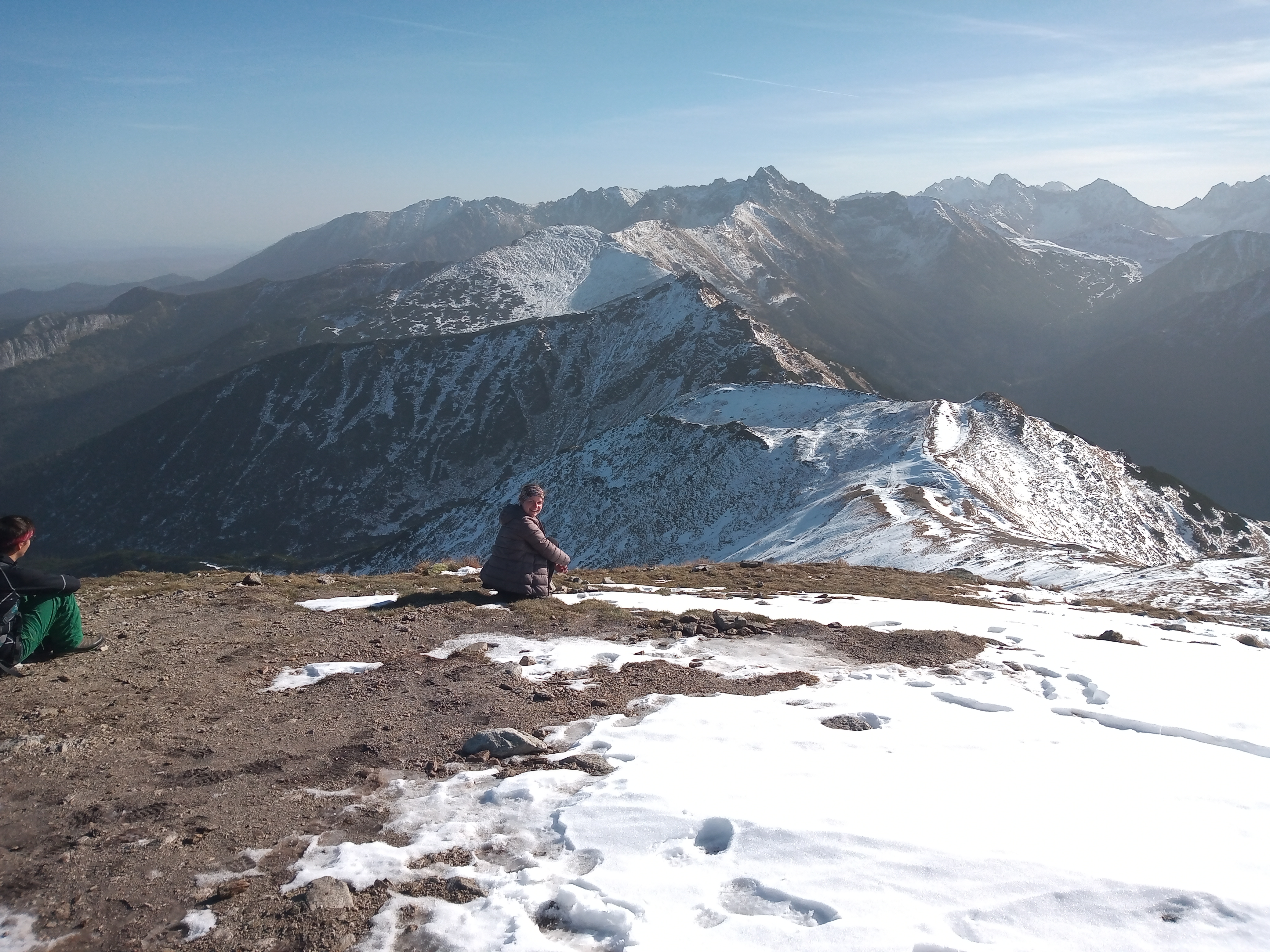 Piękny mieliśmy widok na Giewont. Zrobiliśmy sobie przerwę i pożegnaliśmy się z Panią, która ruszyła dalej, bo miała jeszcze długi szlak przed sobą. Zjedliśmy kanapki i skierowaliśmy się na Kopę Kondracką. Dopiero po kilku chwilach zobaczyłam, to o czym mi mówiła Turystka. Z za skał wyłoniła się przepiękna panorama na Tatry po słowackiej stronie.